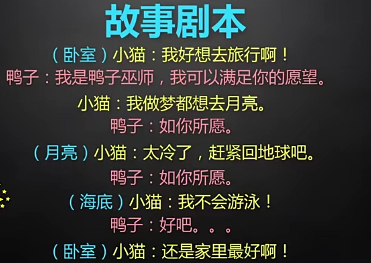 更换背景 添加角色 代码面板他可以让我们的角色做一些事 造型面板用来编辑角色造型 角色和造型的关系 背景和舞台的关系 故事剧本 运行和暂停程序 小任务
