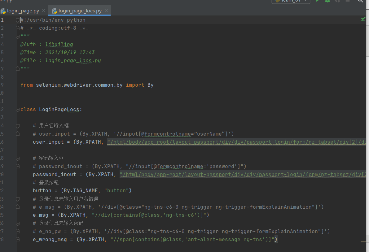 页面元素封装,对于每个系统的测试界面元素进行封装,便于查找或更新元素