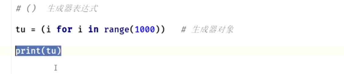 第一种语法: 推导式的最外层符文从{}、【】变为()即为生成器表达式,