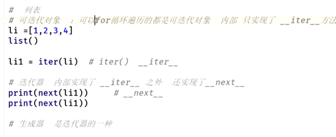 1、实现了迭代器协议的对象(实现方式:对象内部定义了iter()方法)