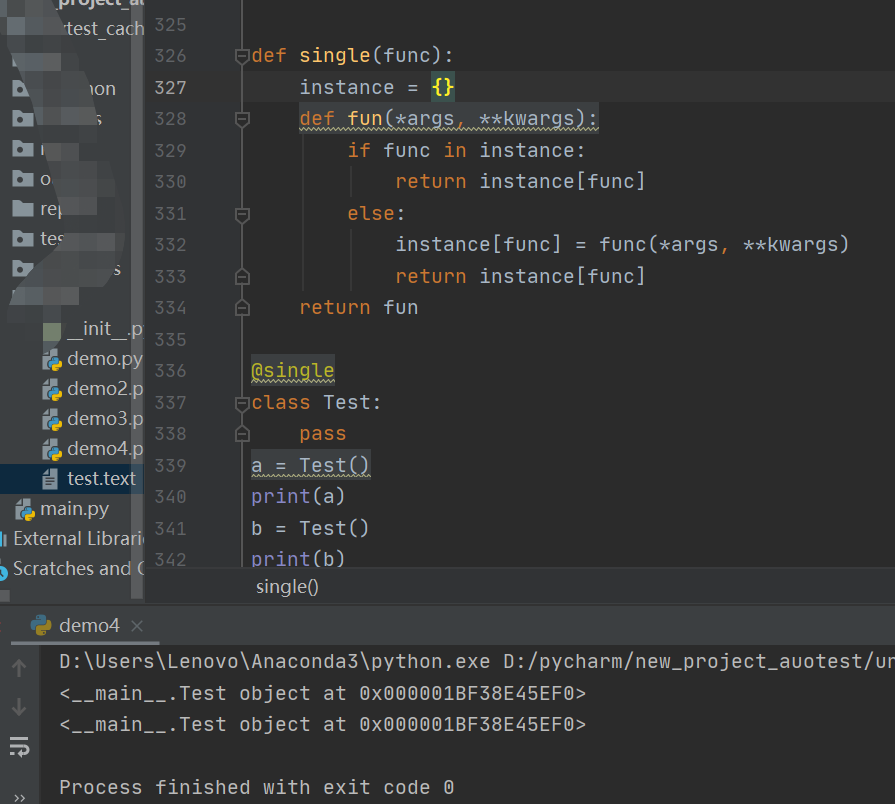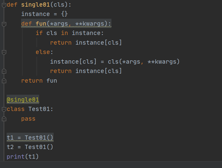 通过装饰器实现单例模式,只要任意一个类使用该装饰器装饰,那么就会变成一个单例模式的类