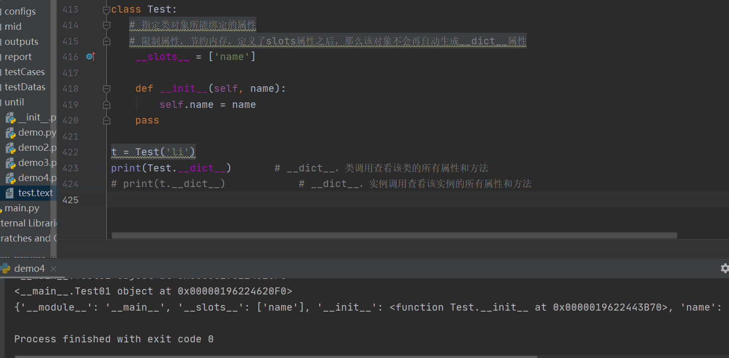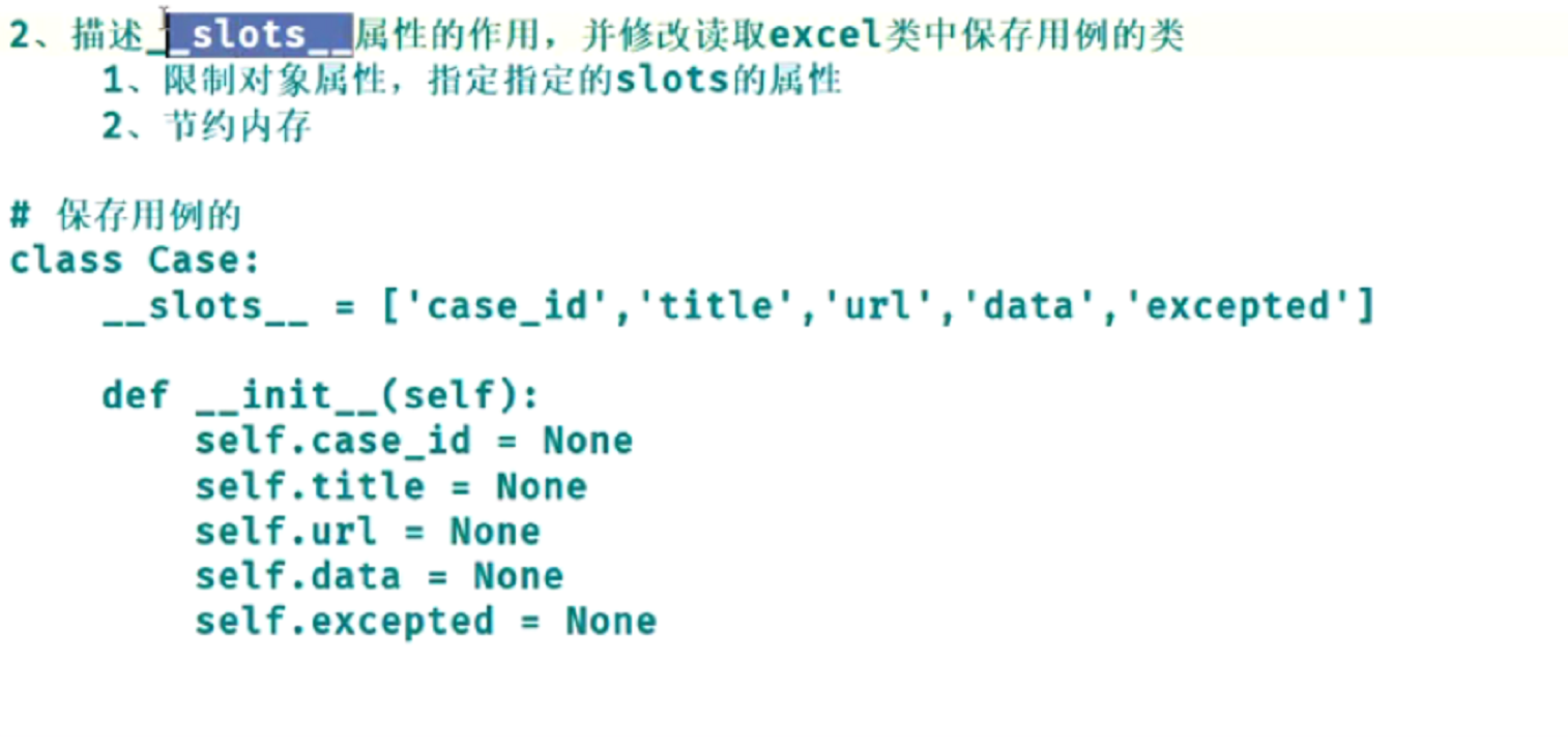 指定类对象所能绑定的属性,其它的属性就不能在init中新增了,限制属性,节约了内存