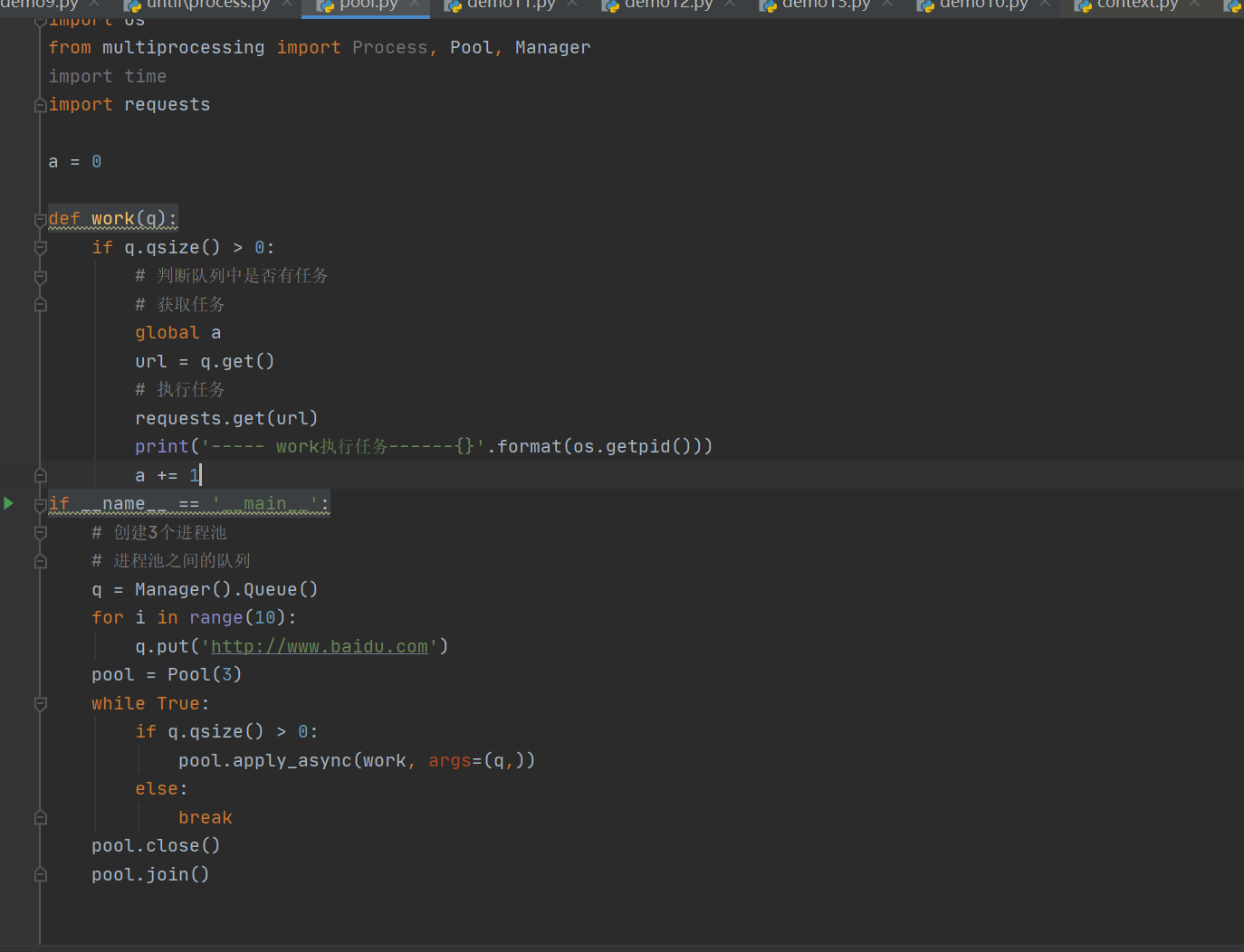 初始化Pool时,可以指定一个最大进程数,当有新的请求提交到Pool中时,如果池还没有满,那么就会创建一个新的进程用来执行该请求,但如果进程池中已经达到指定的最大值,那么该请求就会等待,直到池中有进程结束,才会用之前的进程来执行新的任务