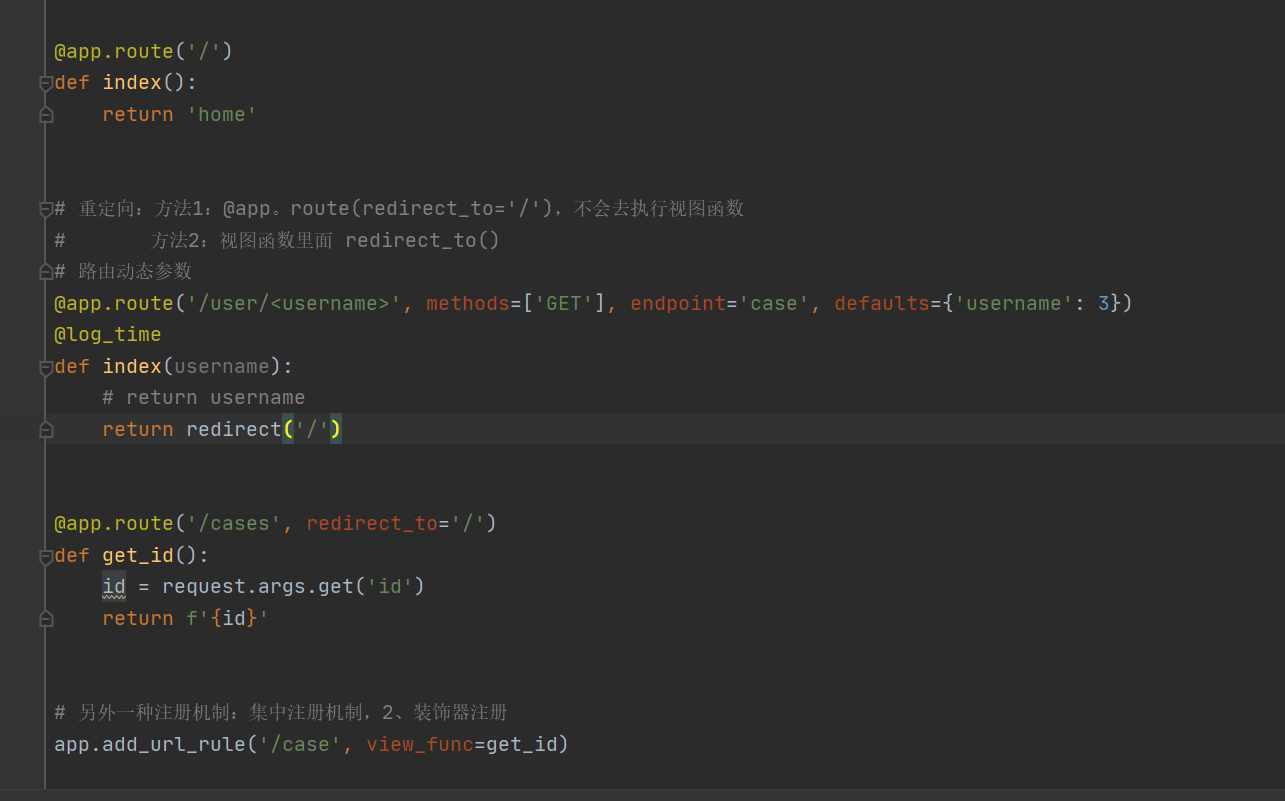 重定向:方法1:@app.route(redirect_to='/'),不会去执行视图函数