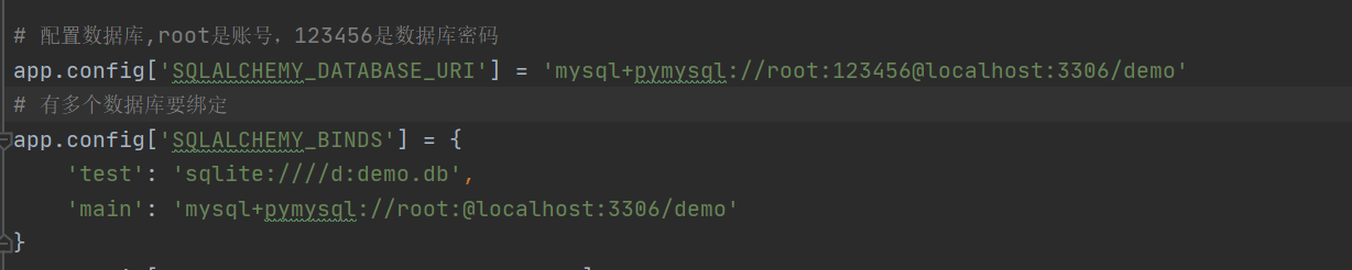 1、配置 app.config 添加一个:app.config['SQLALCHEMY_BINDS']
