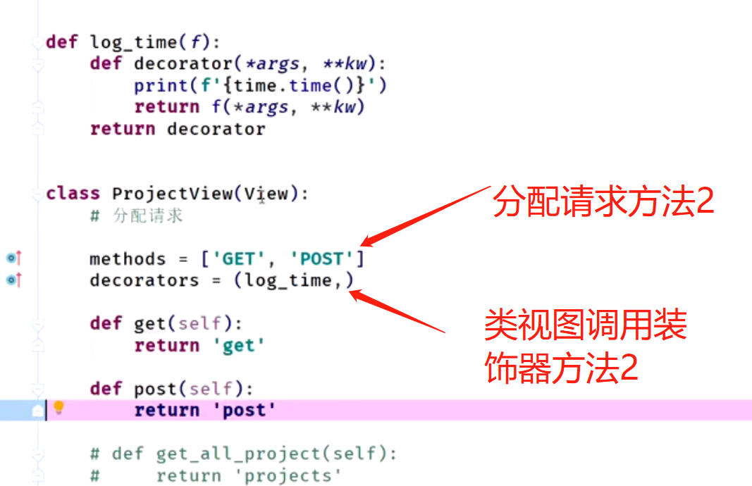 类视图有两种调用装饰器方式和两种声明请求方法的方式: