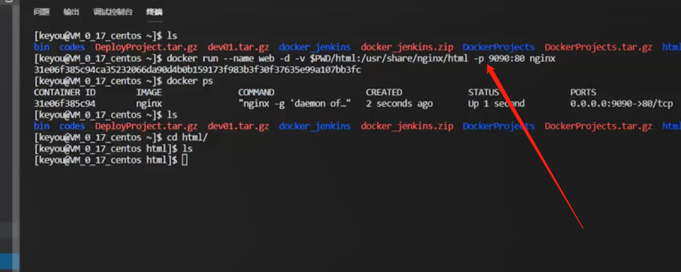docker logs -f containerID or name:查看容器内部的标准输出,-f 参数是容器的标准输出