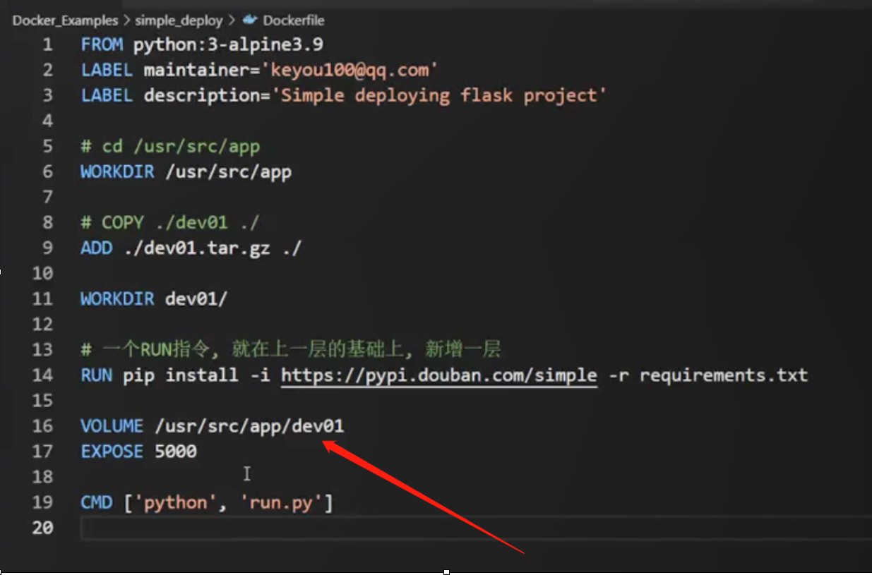 一般将需要安装的依赖,使用一个 RUN 来创建,如:RUN apt-get update && apt-get install -y nginx