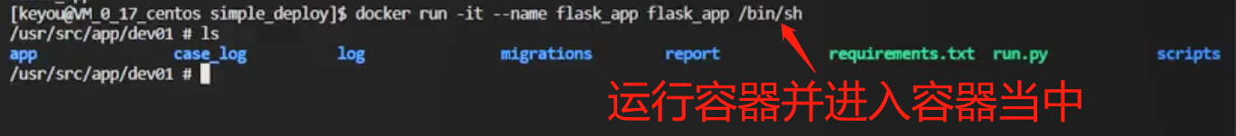 docker run -itd --name flask_app flask_app /bin/sh:运行并命名镜像 flask_app 的容器为 flask_app,并以命令行模式进入到容器当中交互