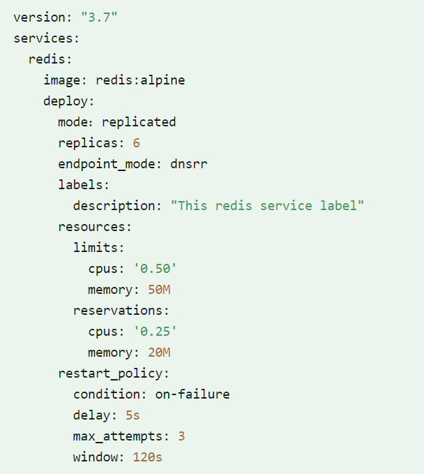 部署deploy ,指定与服务部署和运行有关的配置,只在swarm 模式下有用,如: