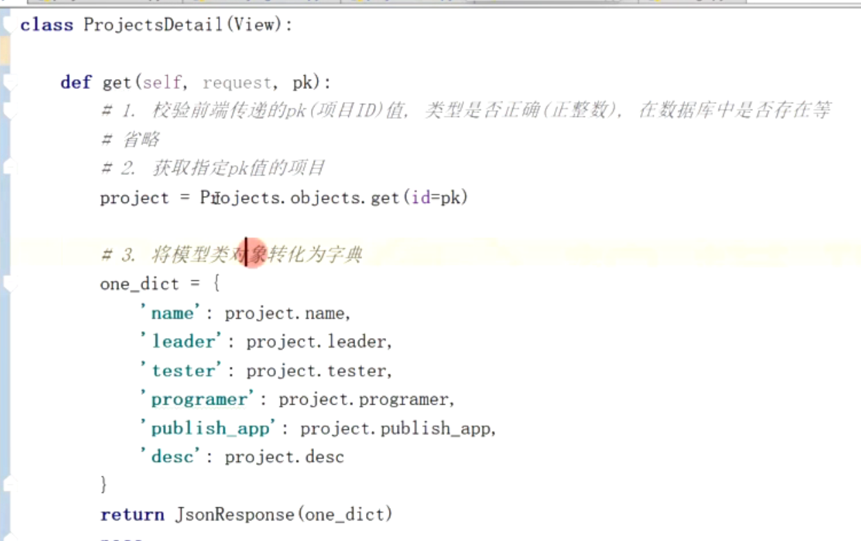 1、校验前端传递的pk (项目ID)值,类型是否正确(正整数),在数据库中是否存在等