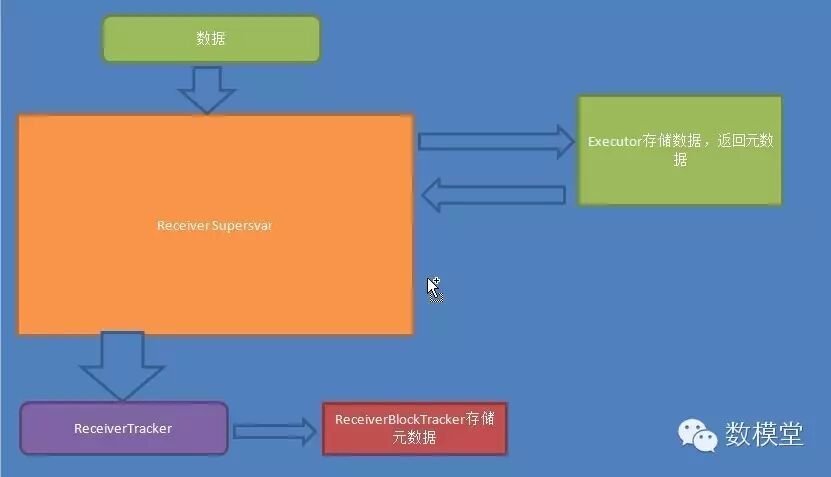 * 数据后会通过ReceiverSupervisor存储到Executor并且把数据的Metadata信息发送给Driver中的ReceiverTracker,在ReceiverTracker