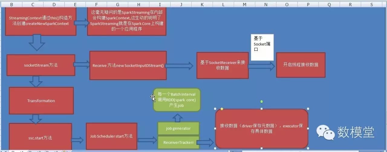 二 :这是重点,这里通过源码图来加深认识Spark Streaming 的运行过程。
