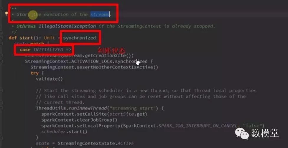 * 在StreamingContext调用start方法的内部其实是会启动JobScheduler的Start方法,进行消息循环,在JobScheduler