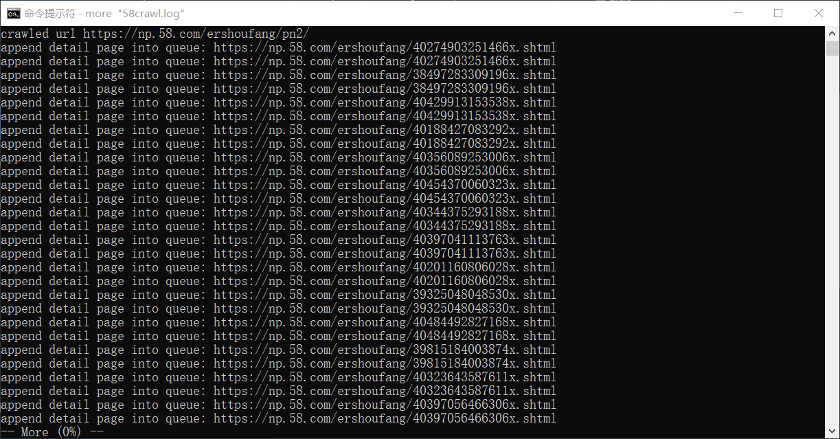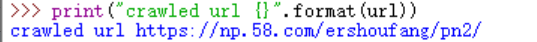 results[url] = { 'title': soup.select_one(".main-wrap .house-title h1").text.replace("\n", "").replace(" ", ""), 'image': soup.select_one("#smainPic")["src"], 'sumPrice': soup.select_one(".main-wrap .price").text.replace("\n", "").replace(" ", ""), 'unitPrice': soup.select_one(".main-wrap .unit").text.replace("\n", "").replace(" ", ""), 'houseRoom': soup.select_one(".room .main").text.replace("\n", "").replace(" ", ""), 'houseFloor': soup.select_one(".room .sub").text.replace("\n", "").replace(" ", ""), 'houseArea': soup.select_one(".area .main").text.replace("\n", "").replace(" ", ""), 'houseFurnishing': soup.select_one(".area .sub").text.replace("\n", "").replace(" ", ""), 'houseTorward': soup.select_one(".toward .main").text.replace("\n", "").replace(" ", ""), 'houseBuildAt': soup.select_one(".toward .sub").text.replace("\n", "").replace(" ", ""), 'houseAddress': soup.find(attrs={'class': 'c_999'}, text='位置:').find_next_sibling().text.replace("\n", '').replace(' ', ''), 'housePrice': soup.find(attrs={'class': 'c_999'}, text='房屋总价').find_next_sibling().text.replace("\n", '').replace(' ', ''), } fields.update(results[url].keys()) # 如果队列里面还有东西,停一下 if queue: time.sleep(2 + random.randint(3, 5))