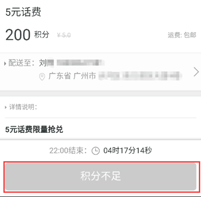 例如常见的例子:要兑换5Q币需要200积分,但是我积分不足,所以兑换按钮是灰色无法点击的状态: