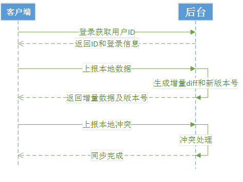 从时序图可以看出,后台有3个接口:登陆获取用户ID,上报本地数据,上报本地冲突。三个接口需要依次调用执行,才能完成同步。那么在接口测试就可以考虑打乱上述接口的执行顺序去执行,会有怎样的结果,是否会出现异常。例如:获取用户ID后不上报本地数据而直接上报本地冲突。