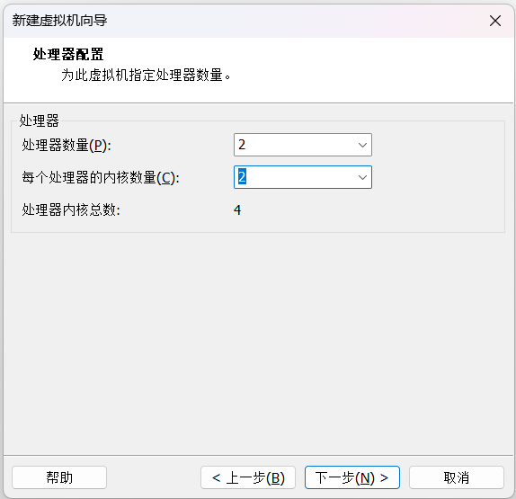 6、处理器配置,因为后面要安装Oracle,我这里配置的高一点