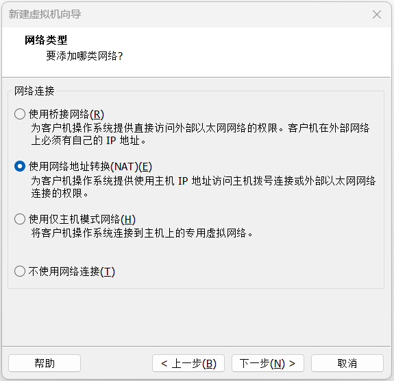 8、网络类型选择默认的NAT, 这个比较复杂,先选默认的,后面再详细写一篇
