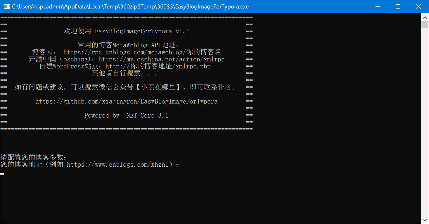 运行程序,按照界面提示输入配置信息。完成后退出就行,参数只需配置一次,如果以后要修改的话再次运行即可。
