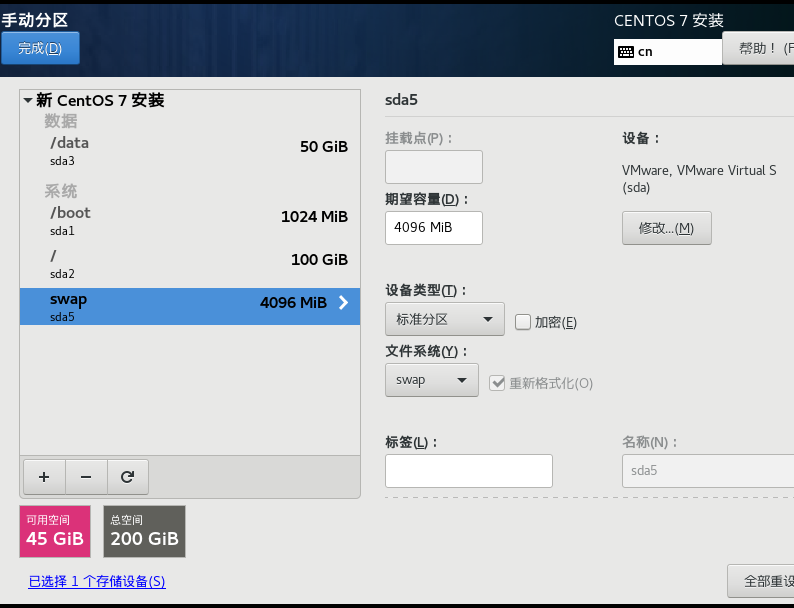 Swap: 虚拟内存,拿硬盘空间当内存,这里设置了 4G