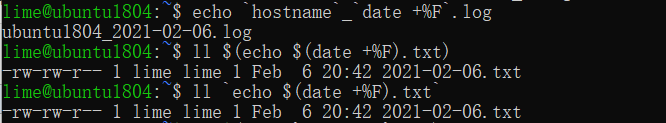 lime@ubuntu1804:~$ echo '$(date +%F)'