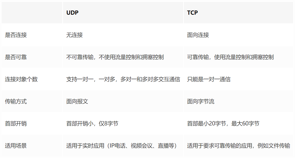 TCP和UDP的对比