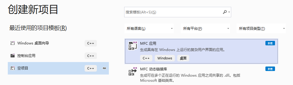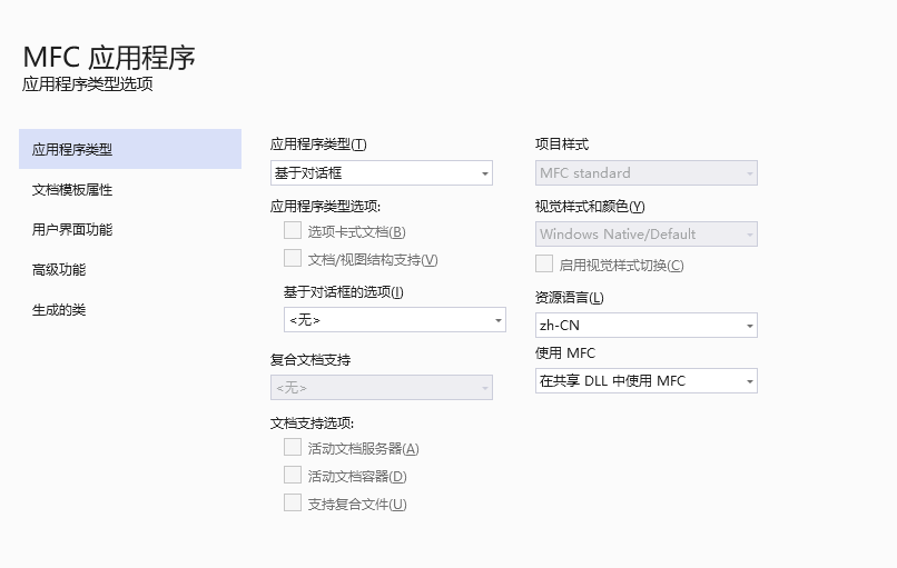 选择静态库,在没有MFC库的电脑中也可以运行,但是文件比较大