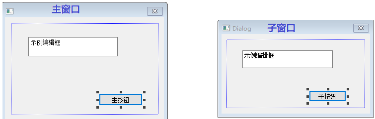 点击主窗口的主按钮,在子窗口的编辑框中显示主窗口编辑框的内容;点击子窗口的子按钮,在主窗口的编辑框中显示子窗口编辑框的内容