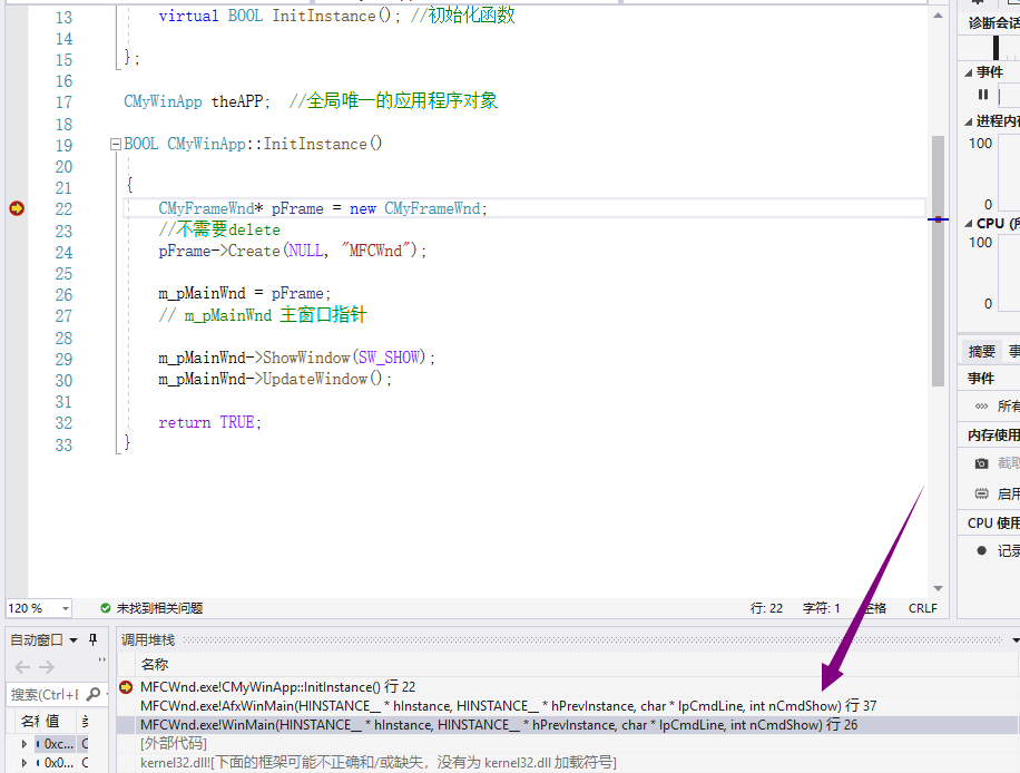 调用堆栈窗口:上面的函数被下面的函数所调用