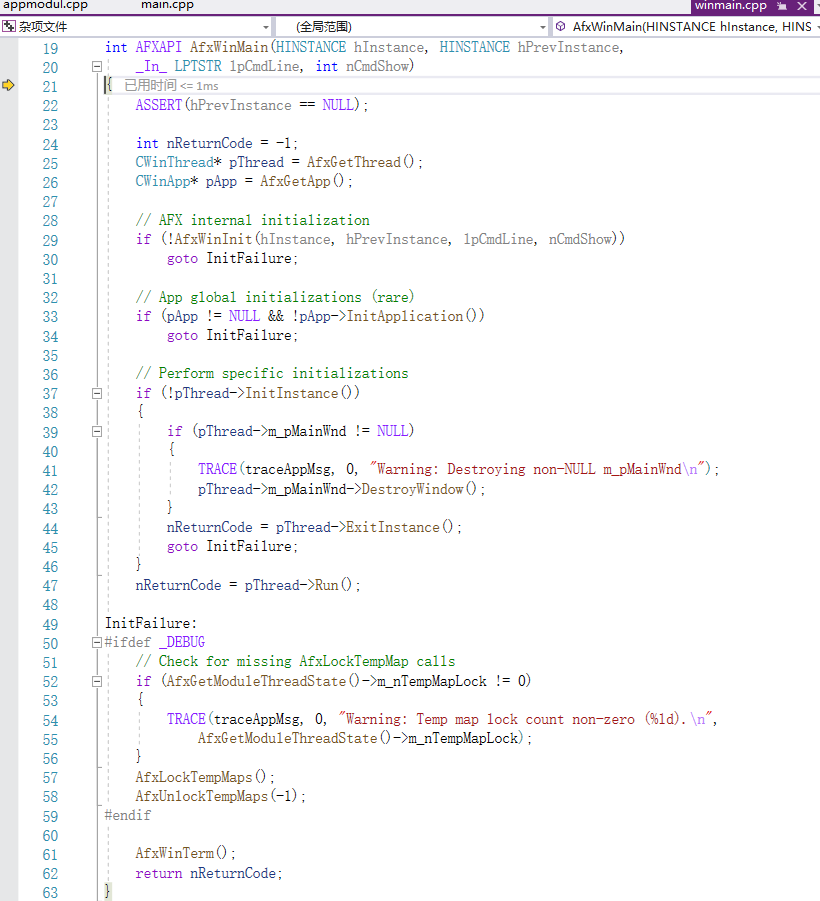 F11进入AfxWinMain函数