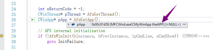 把鼠标放在pThread和pApp上面,可以看到他们都是指向theAPP