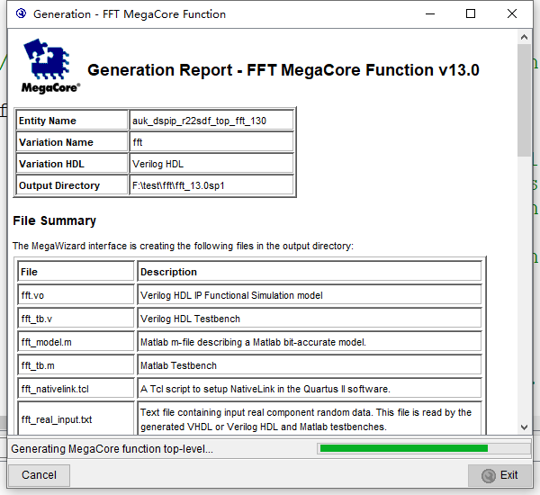 点击结束任务,然后fft的ip核界面就有变化了,直至生成完成。