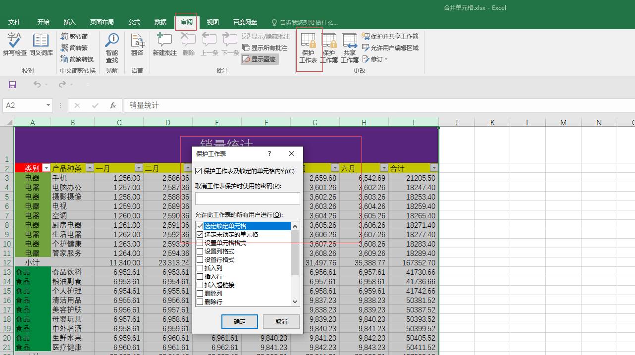 1) 选中你要保护的数据