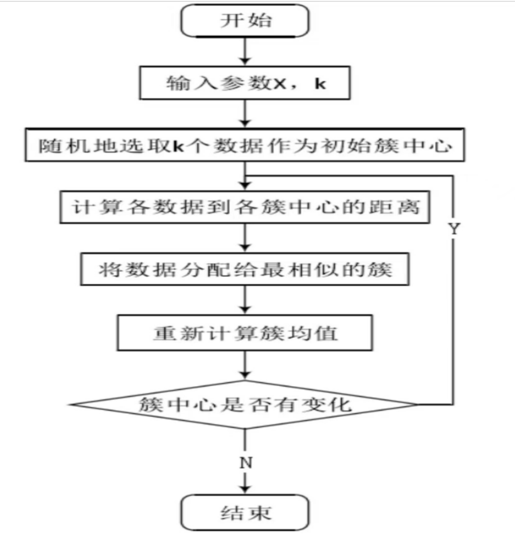 1. 对于给定的一组数据,随机初始化K个聚类中心(簇中心)
