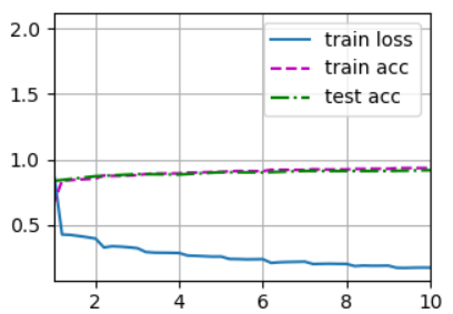 lr, num_epochs, batch_size = 0.1, 10, 128