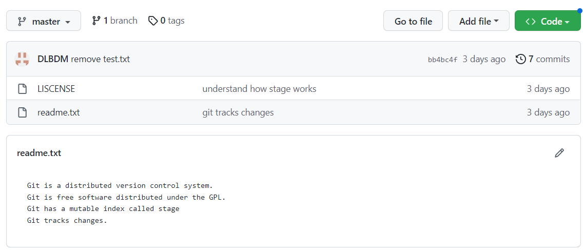推送完成后就可以在GitHub的远程仓库上看到同样的内容: