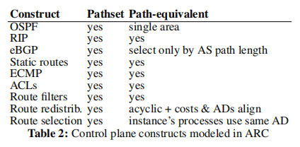 ARC能够快速验证故障场景下的不变量正确性,因为它分析图特征而不是生成具体的数据平面;ARC不支持iBGP和高级的协议属性(如,BGP local preference)。此外,ARC对ACLs的支持不足,它无法考虑流量优先通过由于ACL而移除的边的情况。
