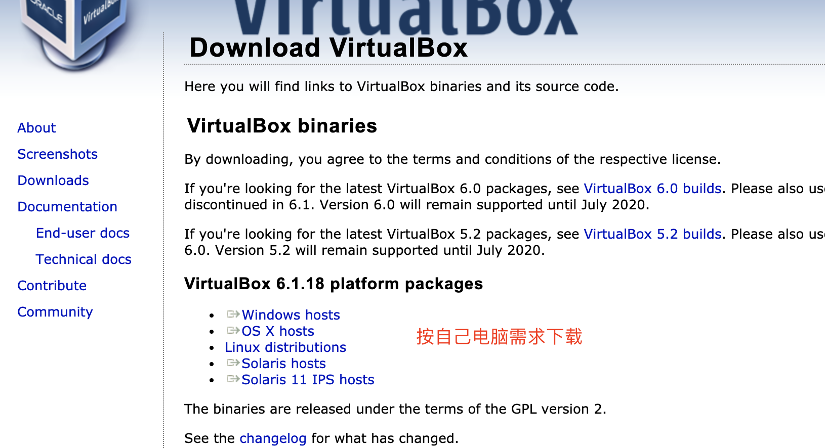 官方下载:https://www.virtualbox.org/wiki/Downloads