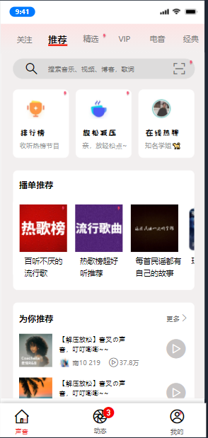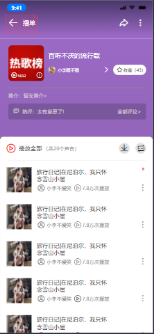3.流行歌单:可以进入听歌界面
