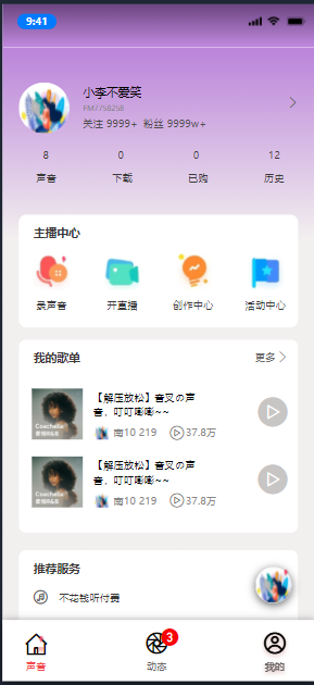 用户可以查看自己个人信息,进行查看流行歌单,听歌以及上传歌曲。