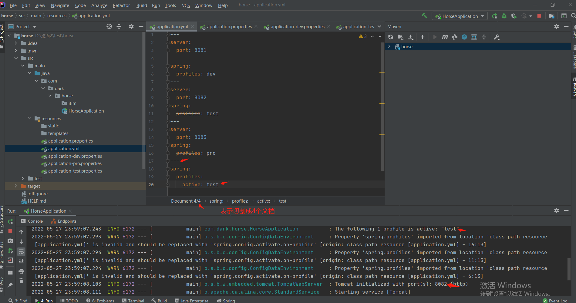 1.配置文件:在配置文件中配置spring.profiles.active=test