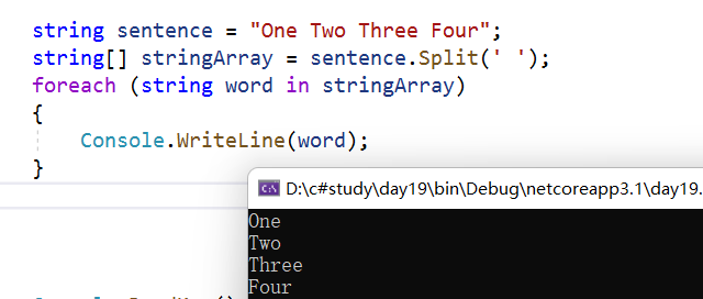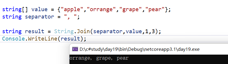1 string s ="A portion of word that is retained"; 2 s=str.Substring(26); //s="retained" 3 s1 = s.Substring(0,5); //s="A por"