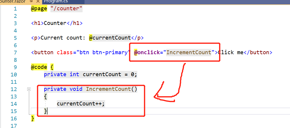 此处的点击对应的是我们代码里面C#,功能。debug可以看到代码跳转到下方。
