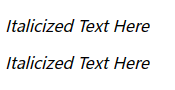 <p><em>Italicized Text Here</em></p> <p><i>Italicized Text Here</i></p>