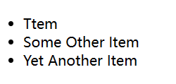 <ul> <li>Item</li> <li>Another Item</li> <li>Yet Another Item</li> </ul>