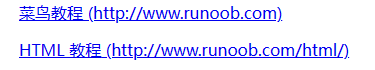 <style> a:before {content: " (" attr(href) ")";} </style> </head> <body> <p><a href="http://www.runoob.com">菜鸟教程</a></p> <p><a href="http://www.runoob.com/html/">HTML 教程</a></p> </body>