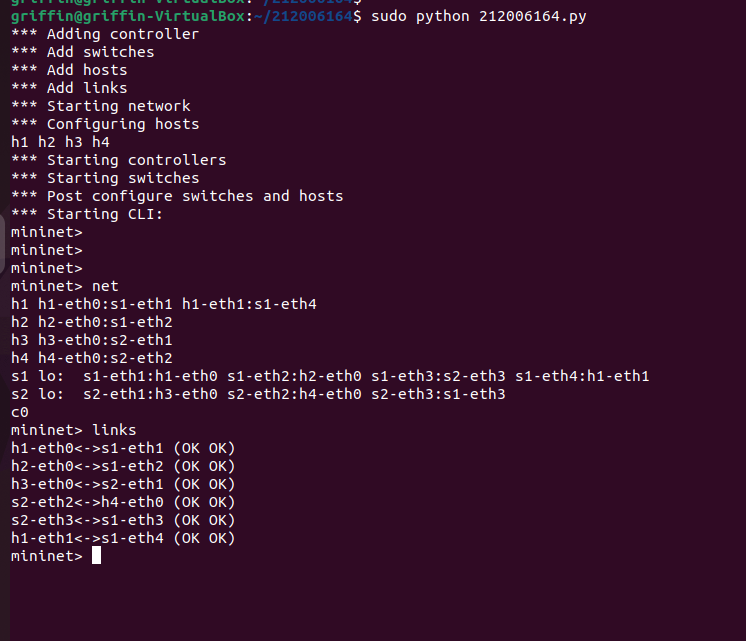 c) 第3步提交修改过的“学号.py”代码、Mininet运行结果