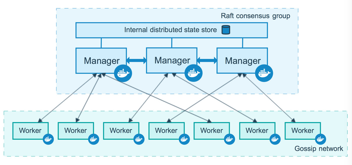 - swarm mananger:负责整个集群的管理工作包括集群配置、服务管理等所有跟集群有关的工作。集群至少有一个manager节点;