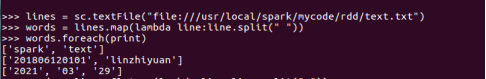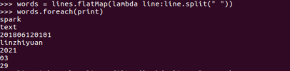 2.将一行一行的文本分割成单词 words(map,flatmap)